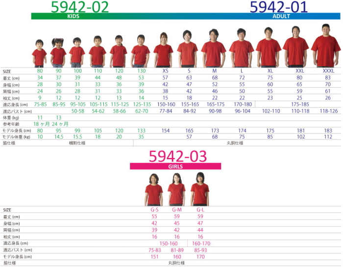 5942 ヘビーウエイトTシャツ 6.2oz SIZE SAMPL
